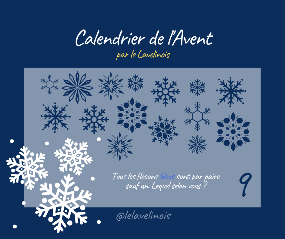 En ce 9e jour du Calendrier de l’Avent, le Lavelinois vous propose un jeu du Dobble spécial Flocons ! Tous les flocons sont par paire sauf un !