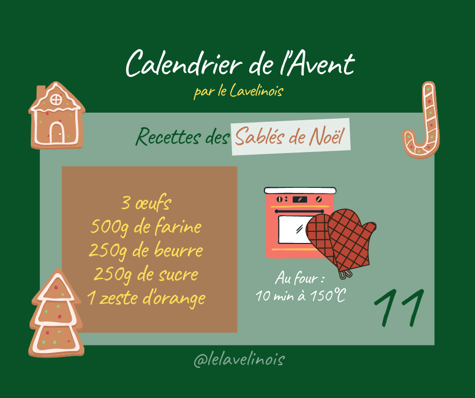 En ce 11e jour du Calendrier de l’Avent, il est temps de vous proposer la recette des Sablés de Noël à la Lavelinoise ! Une recette simple et ludique à réaliser en famille !