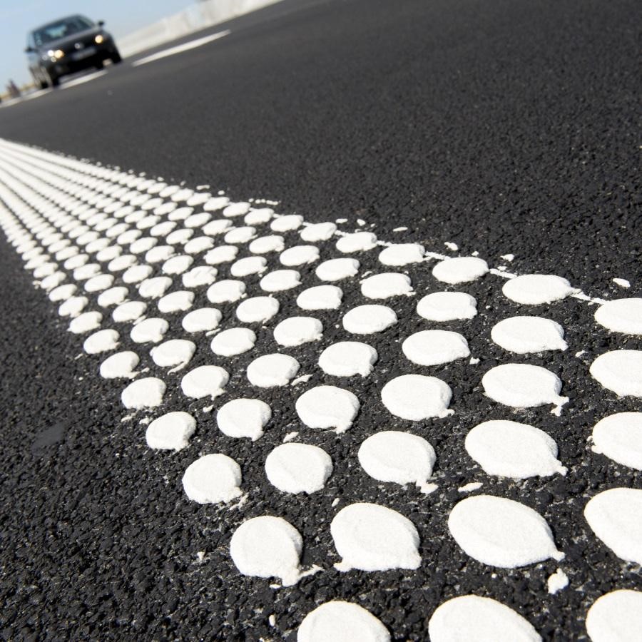 Il s’agit d’un produit certifié en enduit à chaud et classé dans la catégorie des marquages vibratoires et sonores. Parmi les itinéraires mis à 90 km/h, il reste environ 60 km de routes à équiper de ce dispositif, ce qui sera effectif prochainement.