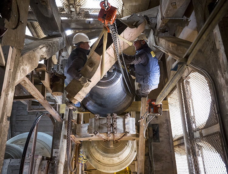 Les travaux réalisés par l’entreprise Bodet, spécialiste reconnue au niveau national dans le domaine, comprennent la construction du nouveau beffroi, la restauration mécanique, l’automatisation des cloches ainsi que la restauration des marches d’accès à l’église.