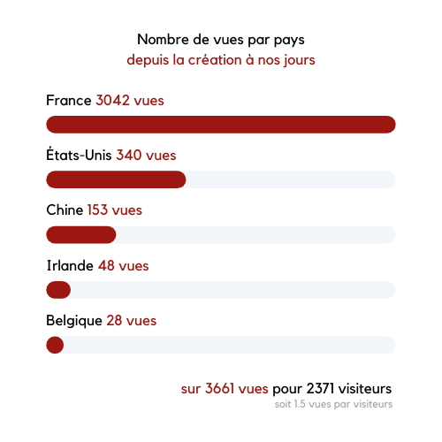 Les articles ont également récoltés plus de 2200 vues sur la même période, soit une moyenne de 750 vues par mois ! Cette période représente 60% des vues totales du site depuis sa création en 2019.