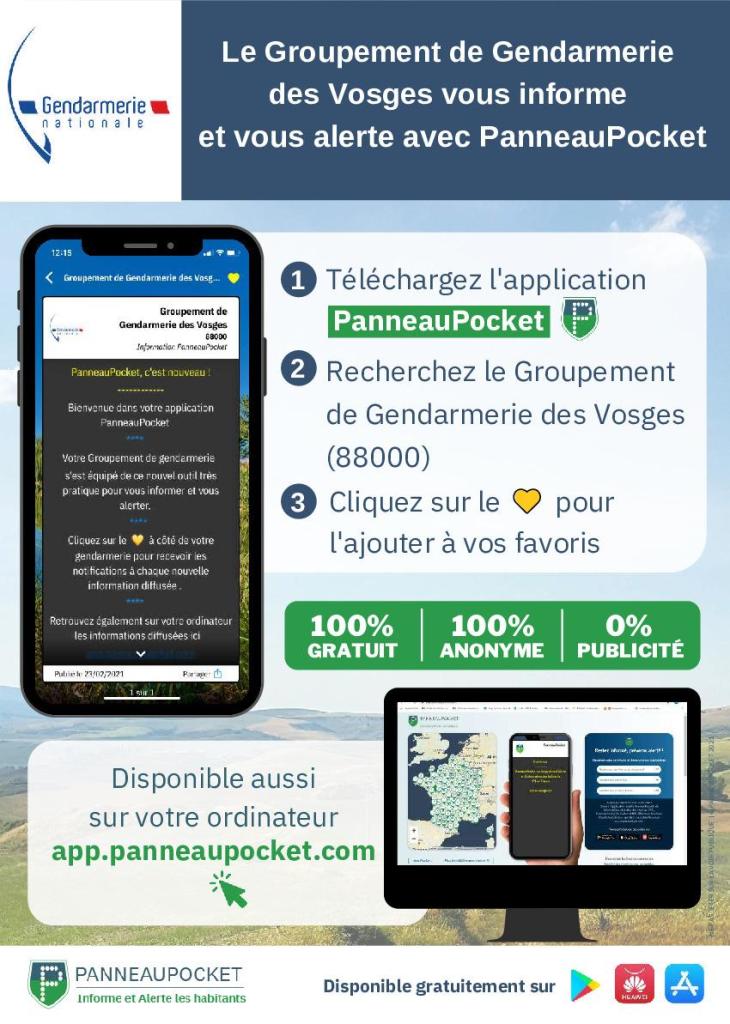 Le groupement de gendarmerie des Vosges renforce ces liens avec les citoyens avec l’application mobile Panneau Pocket !
