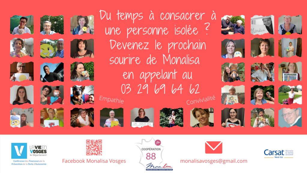 Avec la crise sanitaire, le nombre de personnes isolées s’est accru considérablement. Dans ce contexte, la Fédération des Associations ADMR des Vosges et la Ligue de l’Enseignement des Vosges ont mis en place MONALISA VOSGES.