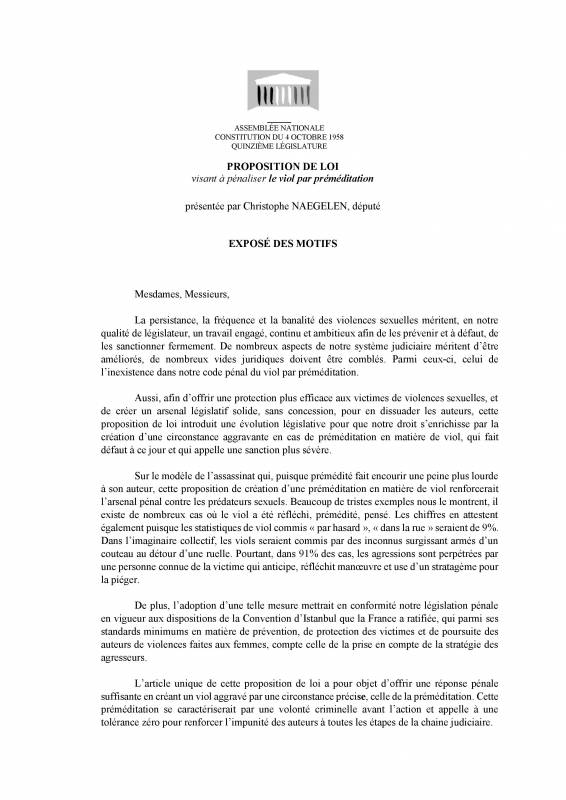 Notre député vosgien Christophe Naegelen porte une proposition de loi pour reconnaître le viol par préméditation. Comme pour le meurtre par préméditation, ce texte propose de reconnaître la préméditation dans le viol.