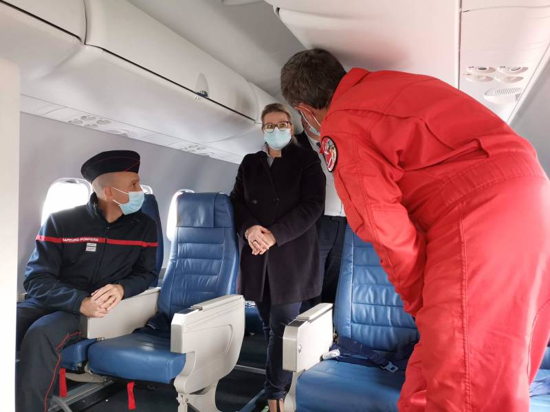 Yves Séguy, préfet des Vosges, et François Vannson, président du Conseil Départemental se sont rendus sur place pour découvrir et visiter le fameux bombardier d’eau de la Sécurité Civile.