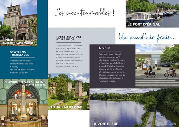 Avec des idées de visites et de balades, 4 secteurs des Vosges y sont décrites avec cartes à l’appui pour le plaisir de tous :