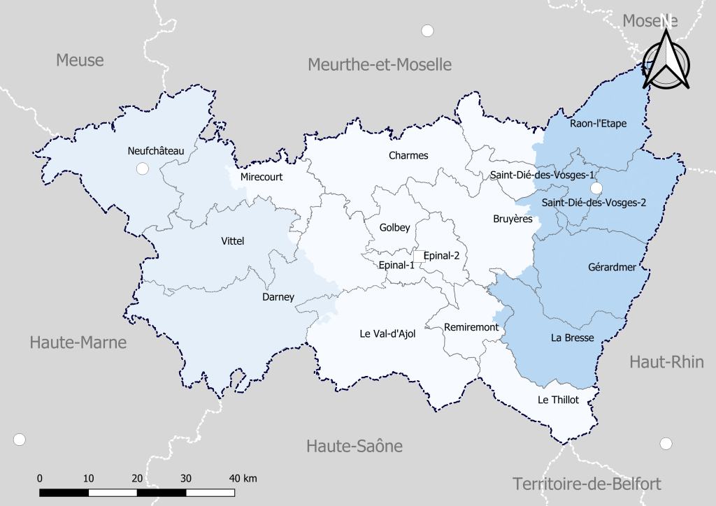 L’Assemblée départementale des Vosges est composée de 34 conseillers départementaux, 17 binômes pour 17 cantons.