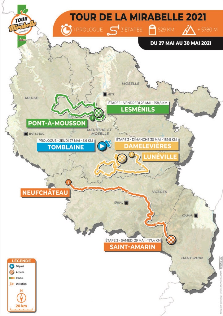 Soutenu par le Conseil Départemental des Vosges, l’édition 2021 du Tour de la Mirabelle se déroule du 27 au 30 Mai pour 530 km en 3 étapes, avec 21 équipes internationales !
