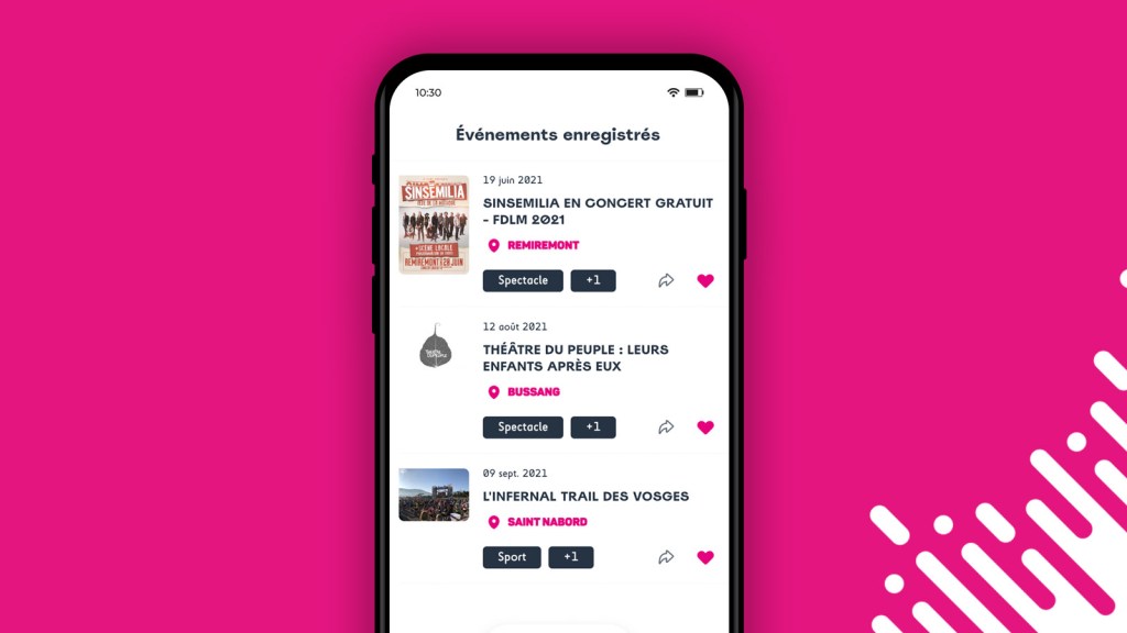 Vous pouvez aussi partager les événements avec vos amis et votre famille depuis l’application vers vos réseaux sociaux favoris. Envie de sortir ? C’est le bon moment !