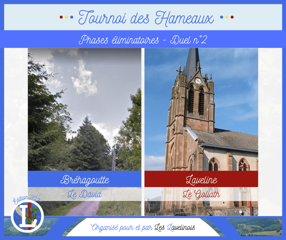 Aujourd’hui, mardi 29 Juin, jour 2 du Tournoi des Hameaux 2021 ! Le 2ème duel des phases éliminatoires oppose le hameau de Bréhagoutte dit le David au hameau de Laveline (Centre) dit le Goliath du Tournoi !