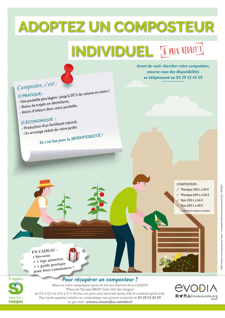 L’agglomération de Saint-Dié-des-Vosges subventionne des composteurs bois ou plastique de format 300L ou 600L pour tous les foyers du territoire déodatien à un tarif préférentiel.