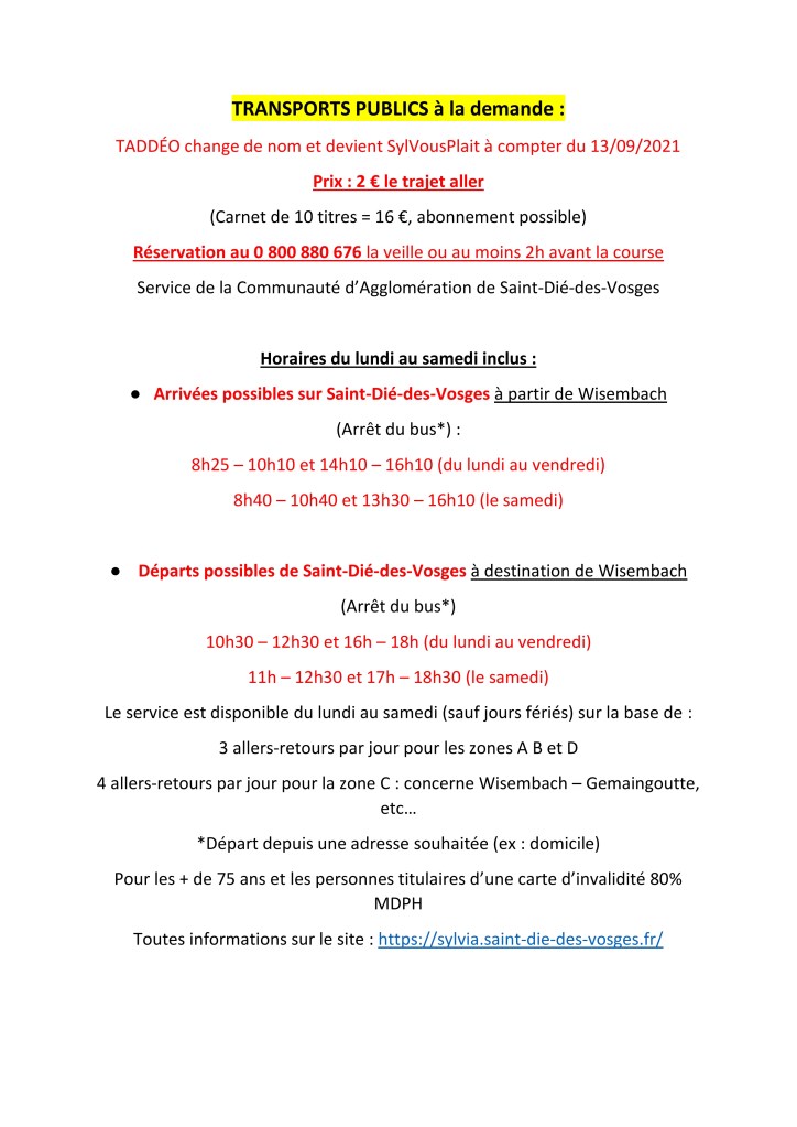 Le service Taddéo devient Syl Vous Plaît avec Sylvia, le réseau de transport unifié de la Communauté d’Agglomération de Saint-Dié.
