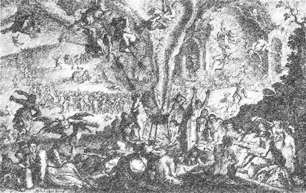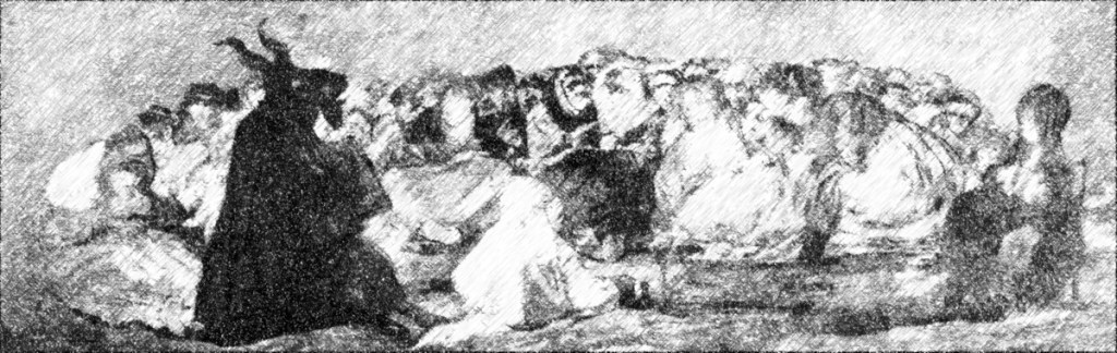 C’était le sabbat, le royaume du diable : tous ces individus était ses sujets, tous sorciers ! En un clin d’œil l’homme fut au centre de la ronde infernale. Le manant resta coi, étrange et ébaubi. La ronde sabbatique tournoyait par-devers lui et il y reconnaissait mainte figure.