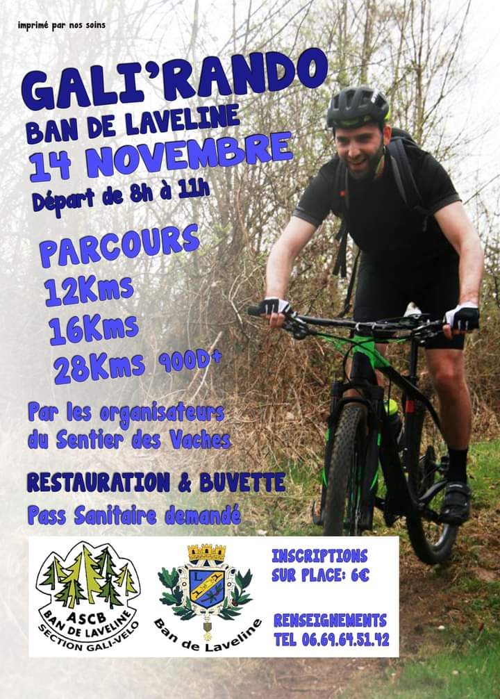 Après avoir balisé les parcours sur l’ensemble de la commune de Ban-de-Laveline, la section ASCB Gali’Vélo a organisé ce dimanche 14 Novembre sa 1ère édition de la randonnée VTT pour tous, adhérents comme non adhérents !