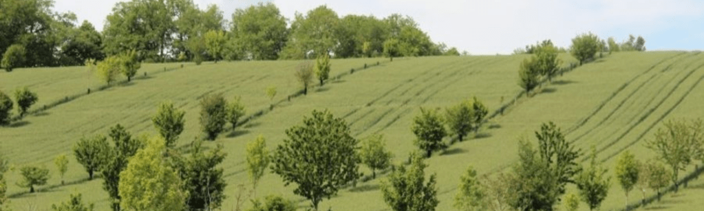 L’agroforesterie est une méthode de culture associant arbres et arbustes plantés en bordure d’une parcelle agricole : entre Robinier, noyer et châtaignier, ce sont plus d’une vingtaine d’essences adaptées aux sols et au climat vosgiens !