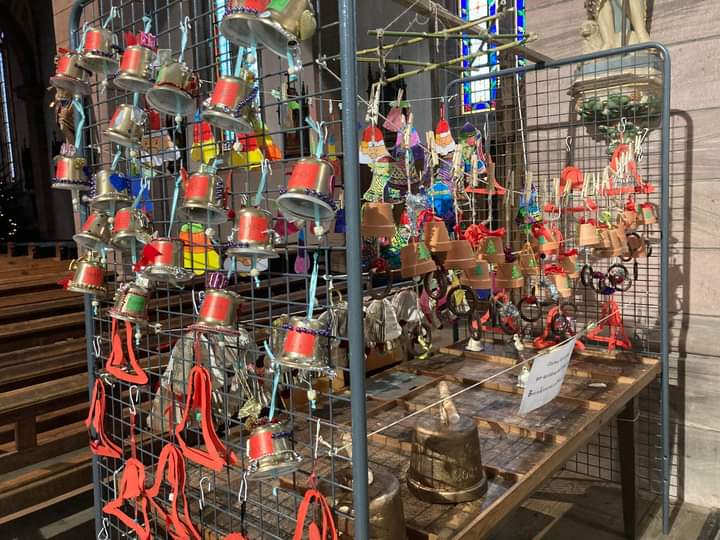 Le vendredi, les jeunes lavelinois de l’école Simone Veil, ainsi que leurs camarades de la Houssière, sont venus visiter l’exposition et y ont apporté leur contribution avec leurs réalisations en forme de cloches, en lien avec l’événement !