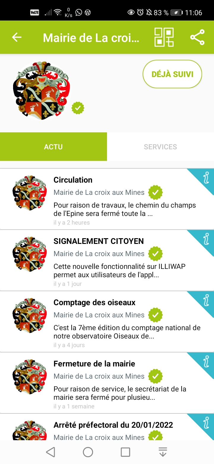Pour accéder à cette fonction depuis votre mobile, rendez-vous sur la station Illiwap Mairie de La Croix aux Mines et cliquez sur l’onglet Services, puis sur l’icône Signaler et suivez ensuite les instructions.