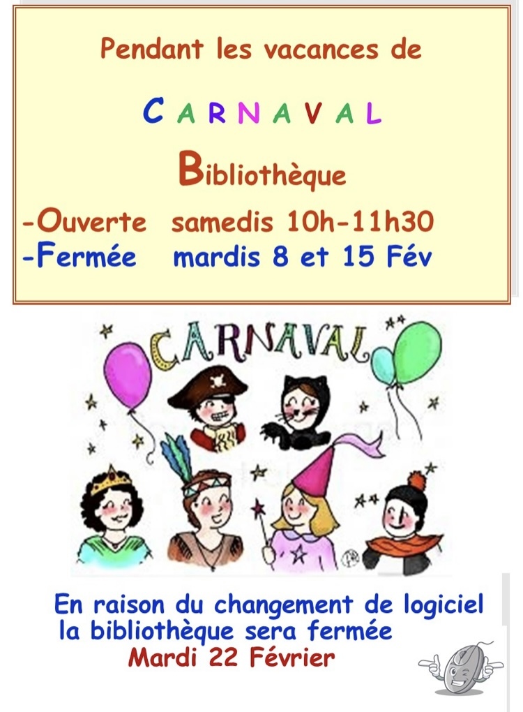 A noter que la bibliothèque sera également fermé le mardi de la rentrée, le 22 Février, en raison de changement de logiciel !