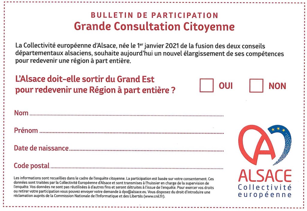 Si le oui comptabilise – sans surprise – 92,4% des participants, quelle place pour les 88 % d’alsaciennes et d’alsaciens qui n’ont pas souhaité participer ? Pas une baguette de pain ou un bar qui n’a pu échapper pendant 2 mois à un matraquage de la campagne de la CeA avec 88% de non-participation, la modération s’impose. […]