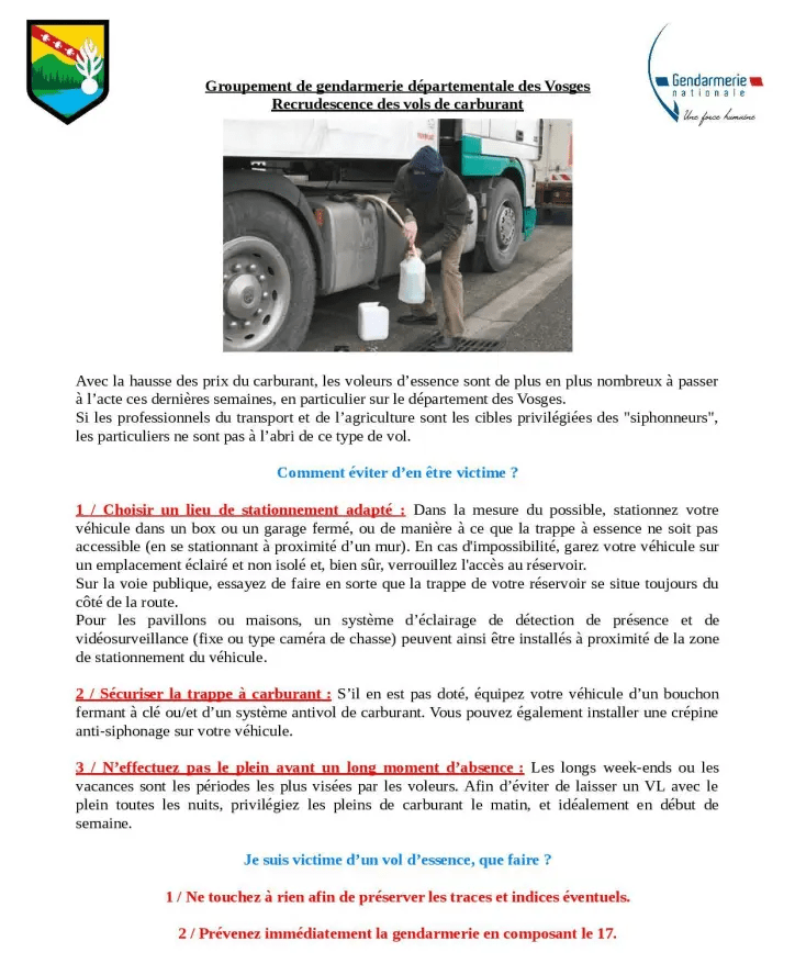 Avec la hausse des prix du carburant, les voleurs d’essence sont de plus en plus nombreux à passer à l’acte ces derniers semaines, en particulier sur le département des Vosges : soyez donc vigilants !