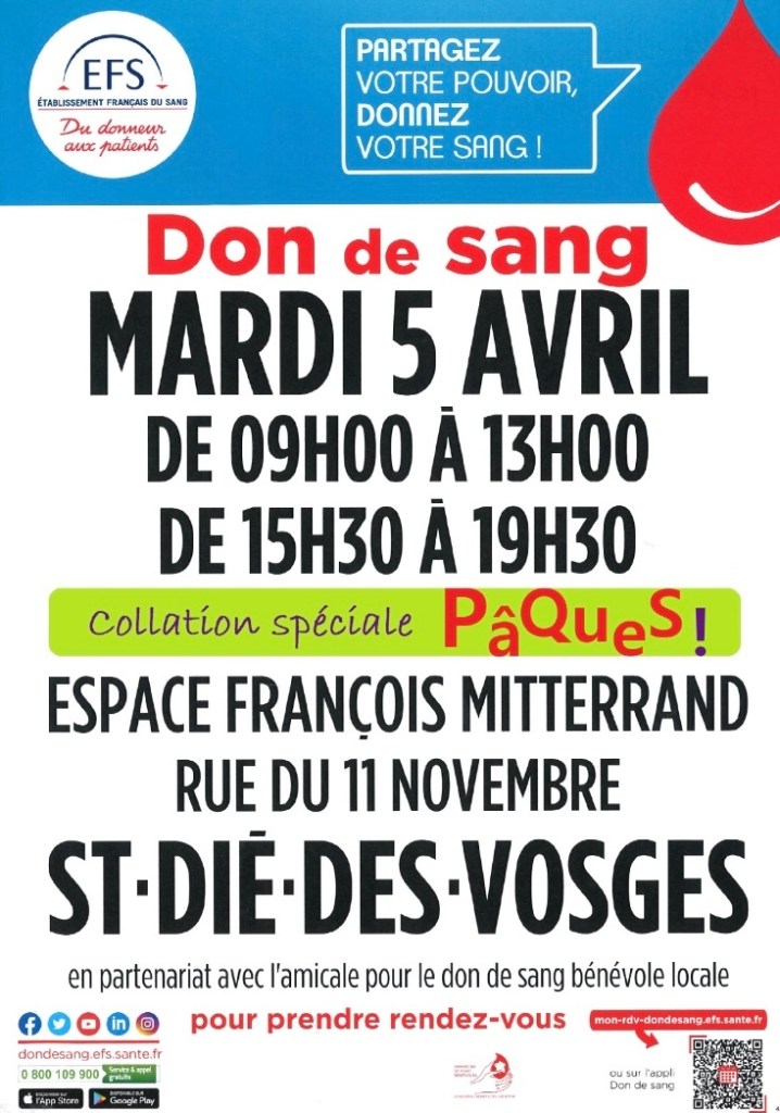 Pour rappel, le don de sang est un geste citoyen qui sauve des vies : un don de sang représente 3 vies sauvées ! Vous pouvez réserver votre créneau de don directement sur le site de l’EFS.