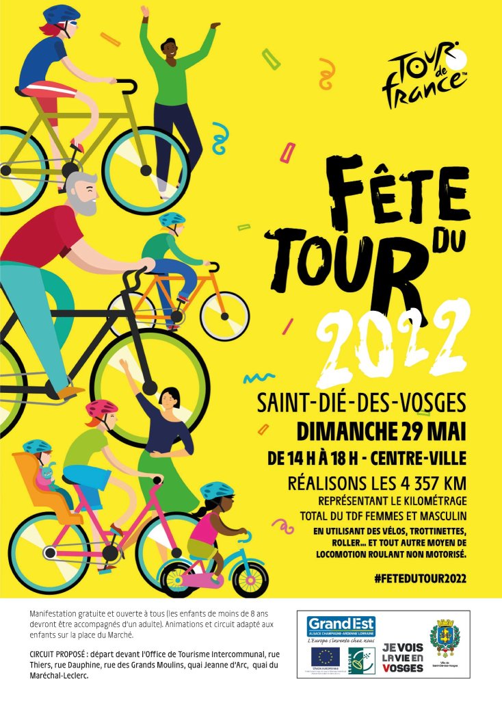Cet été, le Tour de France Femmes fera étape à Saint-Dié-des-Vosges, le 28 et 29 Juillet ! Pour célébrer ce futur temps fort de l’été en Déodatie, une Fête du Tour est prévue ce 29 Mai au centre-ville déodatien !