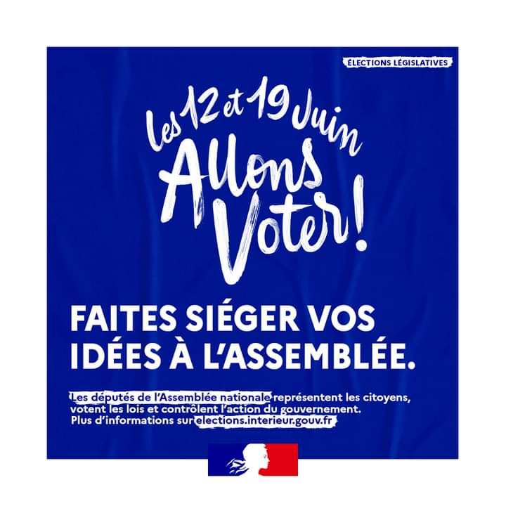 En France métropolitaine, les élections législatives auront lieu le 12 et 19 Juin 2022 : chacun et chacune doit exprimer son opinion, son choix et sa voix en allant voter lors de ces dimanches électorales !