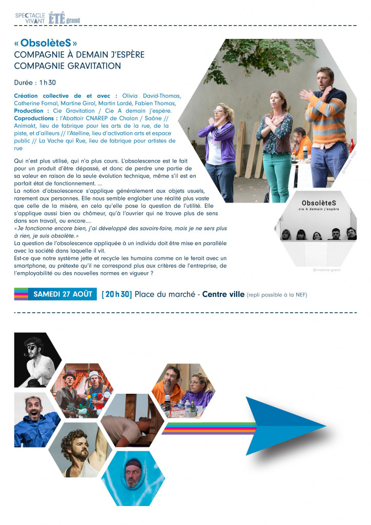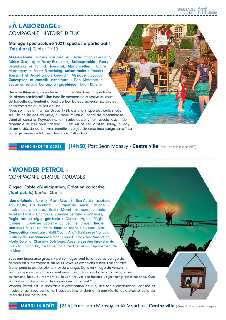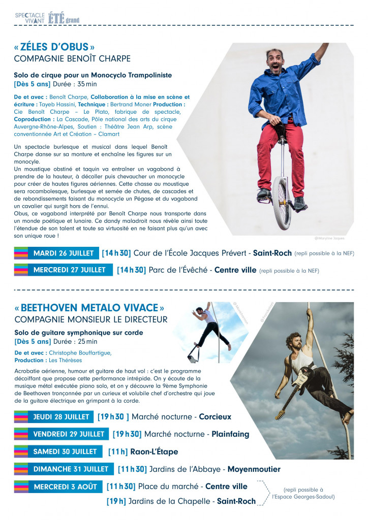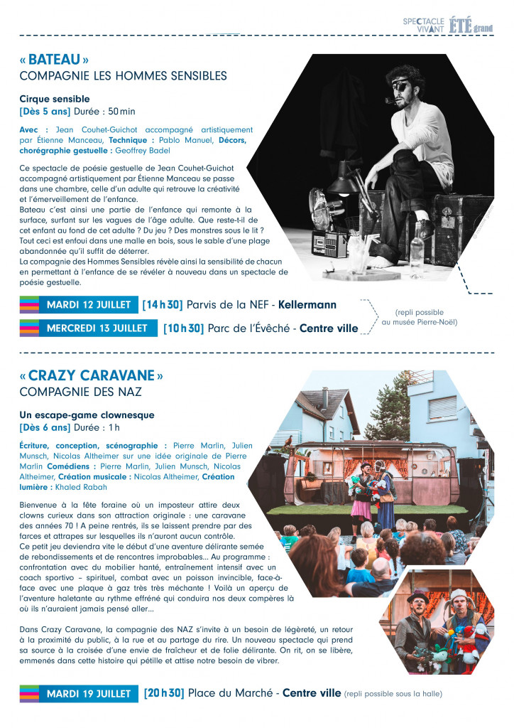 Parmi les plus de 350 rendez-vous de l’Eté en grand à Saint-Dié-des-Vosges, le Pôle du Spectacle Vivant de la Communauté d’Agglomération propose 13 représentations de 7 compagnies professionnelles.