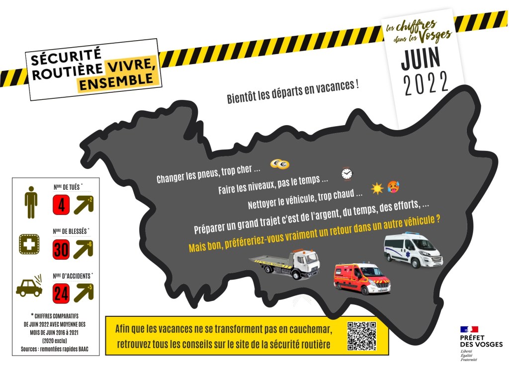 Lors du 20 Juillet dernier, la Préfecture des Vosges a publié le baromètre mensuel de la Sécurité Routière dans les Vosges : un mois de Juin noir avec plus d’insécurité routière que les années précédentes !