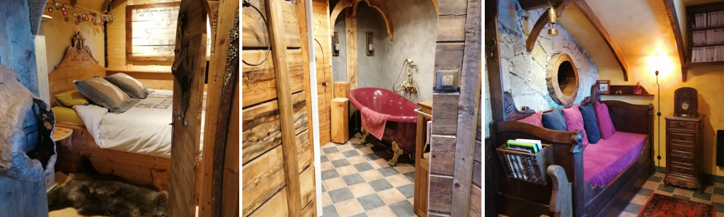 Frais en été, chaud en hiver grâce au poêle à bois, le gîte est adapté pour 2 personnes souhaitant vivre dans la peau d’un Hobbit sans la pilosité développée !