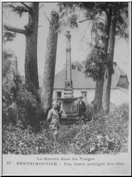 Au cours de la Grande Guerre, la vallée de la Fave était sous les bombardements répétés entre Allemandes et Français sur toute la crête des Vosges. Les 2 abbés de Bertrimoutier, 2 frères, Paul et Charles Chalumeau, firent alors une promesse !