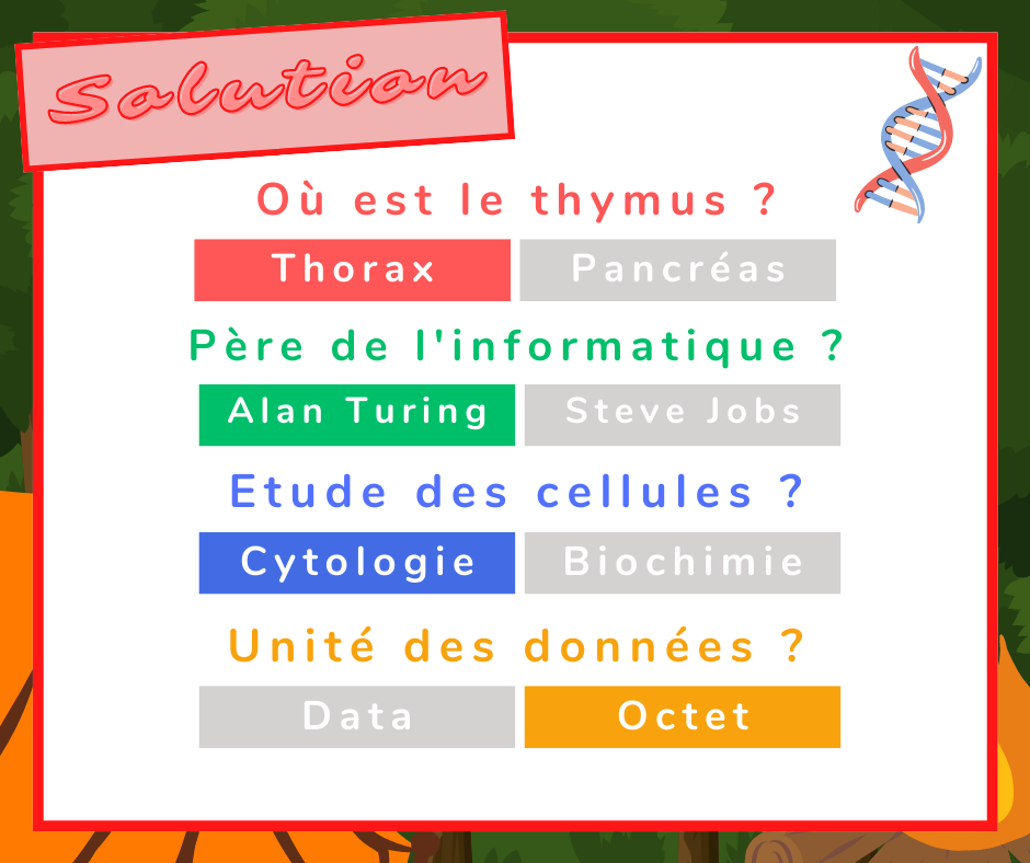 Pour cette 4ème partie du cahier de vacances, étudions les Sciences avec le corps humain et l’informatique ! Voici un petit quizz de sciences pour tester vos connaissances !