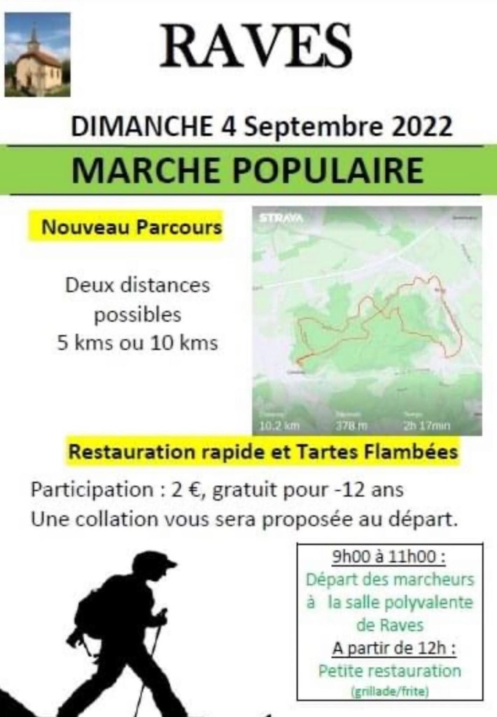 Après le succès de l’an dernier, la Marche Populaire sera de retour ce dimanche 4 Septembre 2022 et organisée par le Comité des Fêtes ravinois : deux nouveaux parcours inédits seront proposés aux participants (5 km et 10 km).
