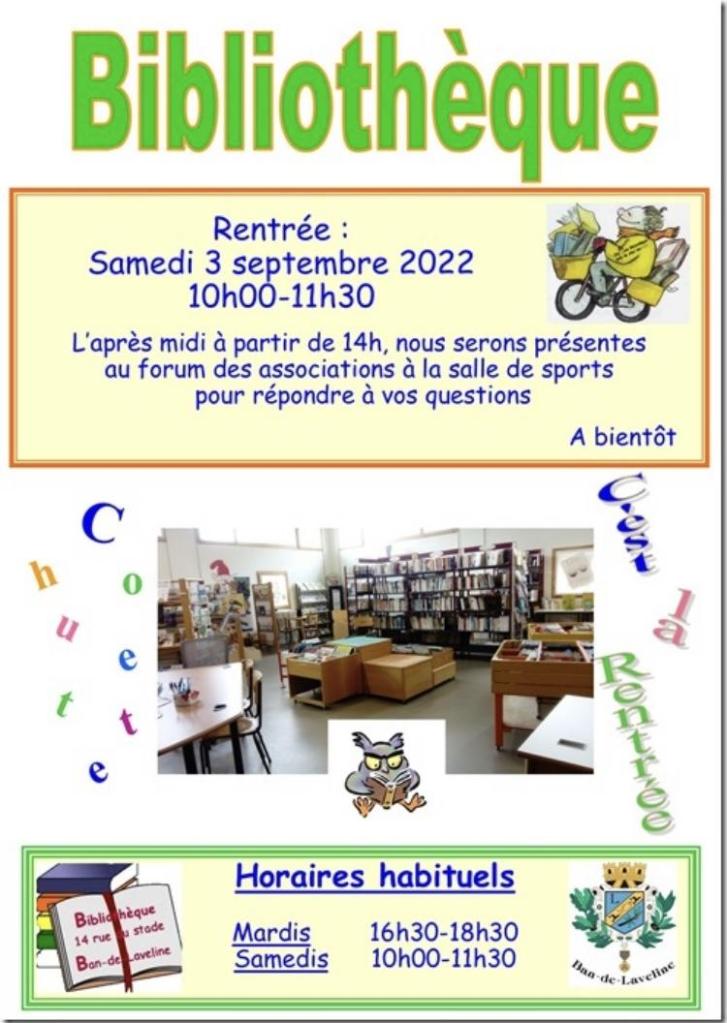 La rentrée est là ! Les écoliers sont retournés sur les bancs de l’école ! Mais c’est également la rentrée pour la Bibliothèque à Ban-de-Laveline ce samedi 3 Septembre 2022 dès 10h00 !