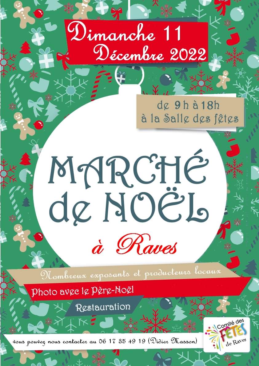 Fort de son succès en 2021 malgré le pass sanitaire, le Marché de Noël de Raves revient cette année pour le plaisir de tous ! Rendez-vous demain 11 Décembre dès 9h00 pour un marché haut en couleur !