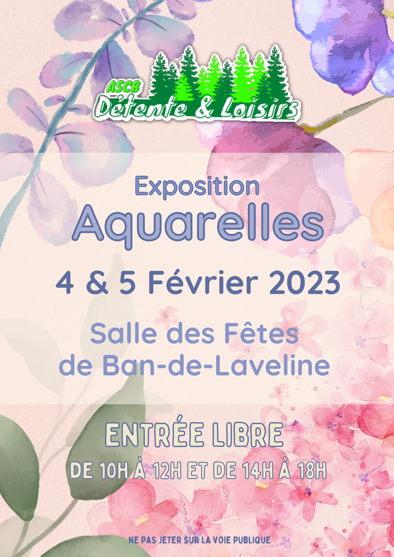 L’ASCB Détente & Loisirs organise son premier événement de l’année 2023 à travers une exposition Aquarelles qui aura lieu le 4 et 5 Février prochain à la salle des Fêtes de Ban-de-Laveline !