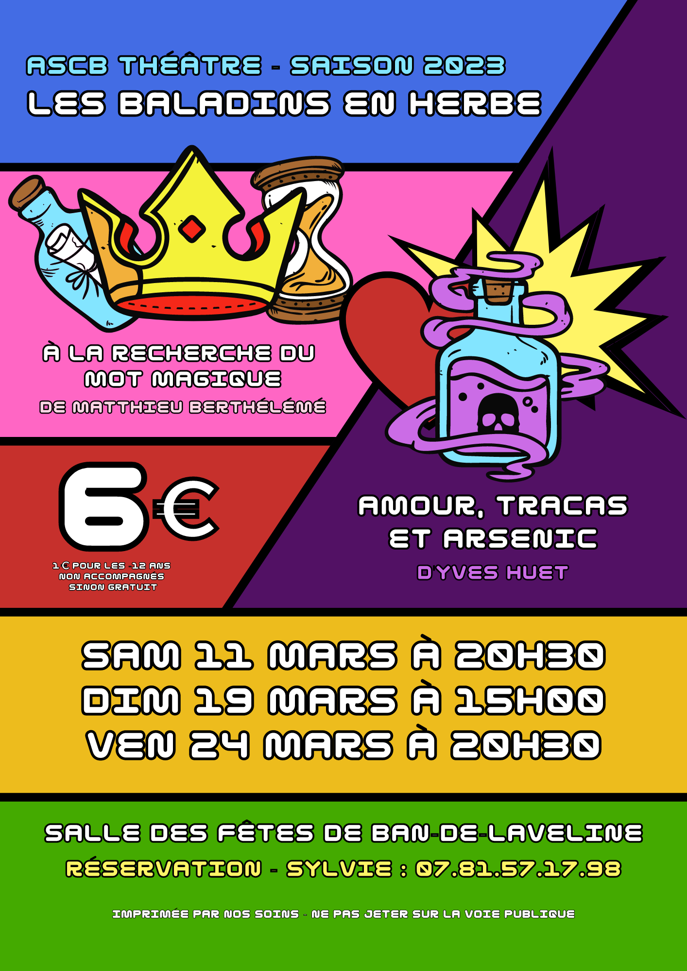 Amatrices et amateurs de théâtre, les Baladins du Ban et en Herbe débarquent en Mars à Ban-de-Laveline ! A vos agendas et pensez à réserver dès maintenant !