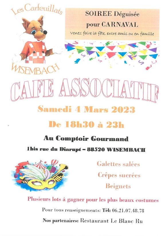 Ce nouveau « Café Associatif » aura lieu comme à l’accoutumé au Comptoir Gourmand, au 1 bis rue du Diarupt à Wisembach, dès 18h30 et jusqu’à 23h00.