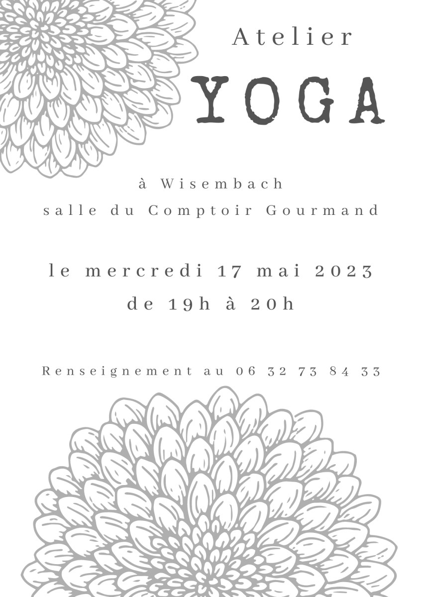 Un nouvel atelier de yoga pour débutant.e.s et confirmé.e.s arrive courant Mai à Wisembach ! La date du 1er atelier est enfin dévoilé : il s’agit du mercredi 17 Mai 2023 !
