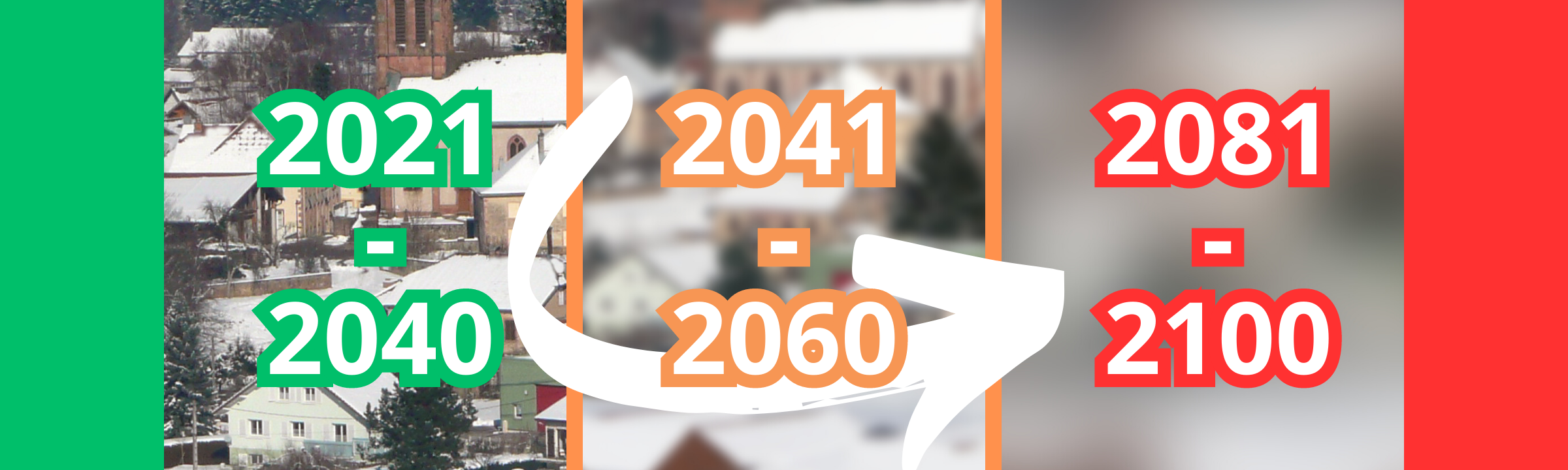 L’impact du changement climatique sur le massif des Vosges est étudié à partir de jeux de projections climatiques à horizon proche (2021-2040), moyen (2041 – 2060) et lointain (2081-2100).