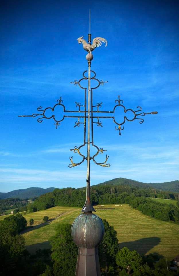 Perché sur son clocher, le coq domine fièrement le paysage lavelinois depuis l’église de Ban-de-Laveline ! Chacune et chacun a une vision approximative, ou lointaine pour les hameaux les plus reculés.