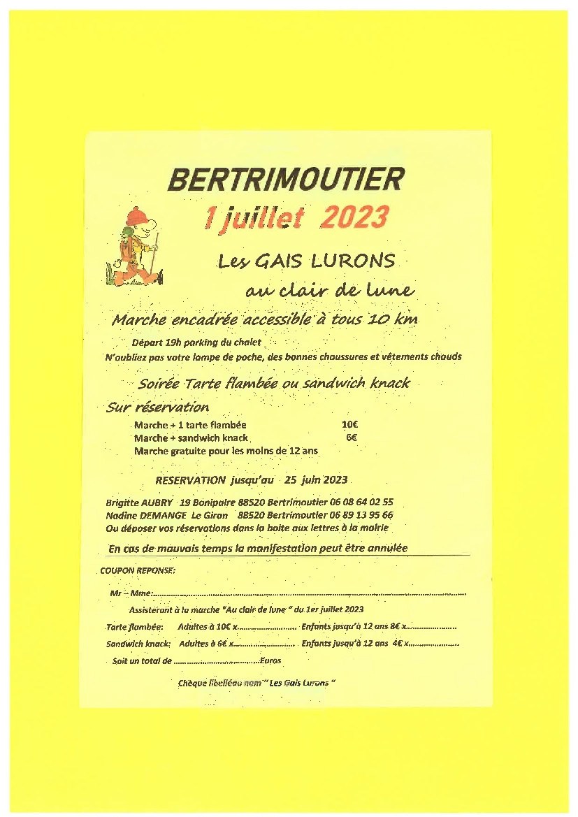 L’association Les Gais Lurons vous invite à une marche de 10 km encadrée et accessible à tous le 1er Juillet à Bertrimoutier !