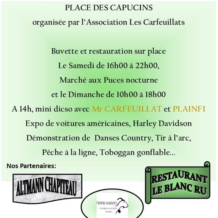 Le dimanche 27 Août dès 10h00, une exposition de voitures américaines et d’Harley Davidson’s sera proposée, en plus d’une démonstration de danses country et des stands de tir à l’arc, de pêche à la ligne ainsi qu’un toboggan gonflable !