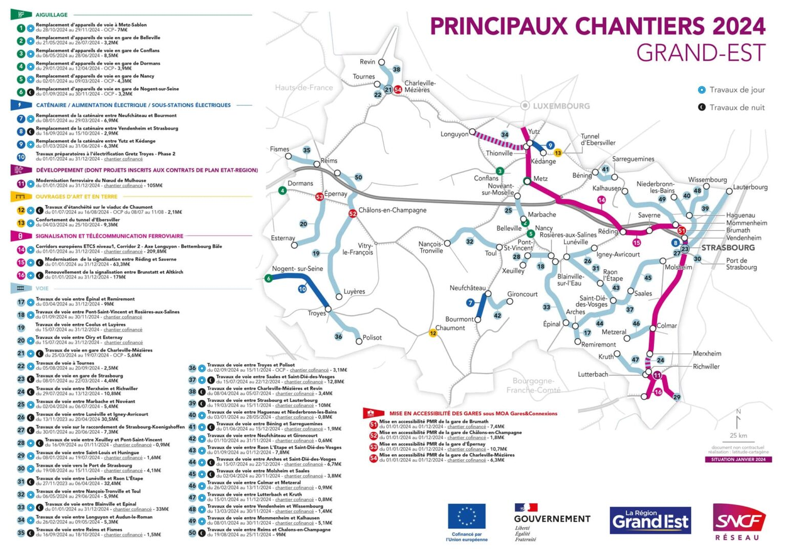 Le principal chantier ferroviaires en Déodatie en 2024 est sur la voie entre Saales et Saint-Dié-des-Vosges pour un montant de 12 800 000 € avec une période prévue de travaux du 15 Juillet au 22 Décembre 2024.