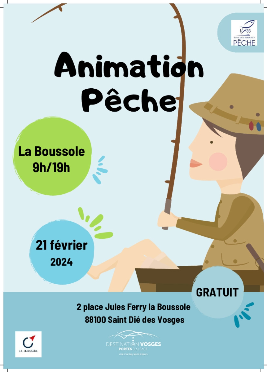 L’Office de Tourisme intercommunal de Saint-Dié-des-Vosges organise une journée d’animations gratuite à la Boussole le 21 Février afin de découvrir la pêche et les poissons de nos rivières, en partenariat avec la fédération départementale de pêche.
