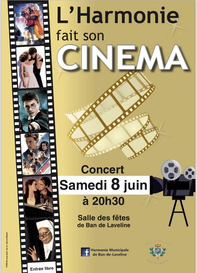 L’Harmonie municipale de Ban-de-Laveline organise un concert ce samedi 8 Juin à la salle des Fêtes dès 20h30 pour (re)découvrir les plus grandes musiques du cinéma !