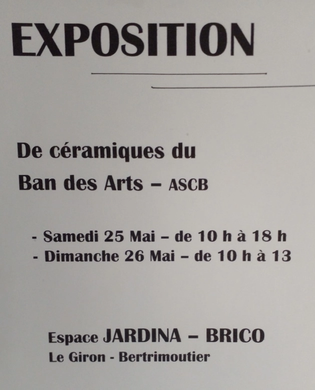 La section Ban des Arts de l’ASCB organise une exposition les samedi 25 et dimanche 26 Mai au cœur du magasin Jardina à Bertrimoutier !