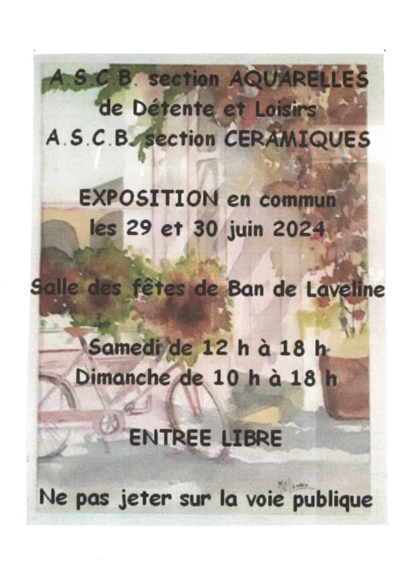 Rendez-vous les 29 et 30 Juin prochain pour une exposition de l’ASCB Détente & Loisirs et l’ASCB Ban des Arts à la Salle des Fêtes de Ban-de-Laveline !