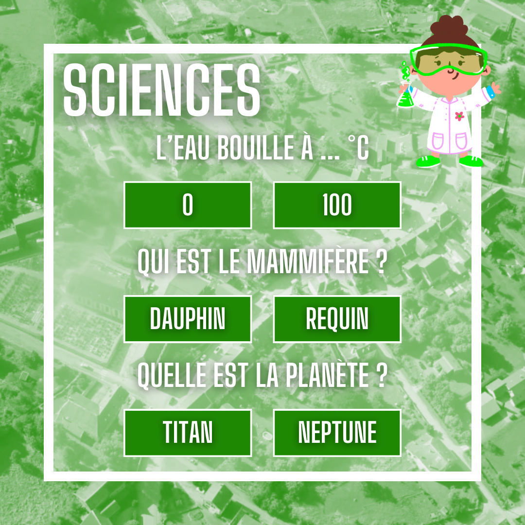 Pour cette 4ème partie du cahier de vacances, après l’Histoire, voici l’ »histoire de la nature » : les Sciences ! Voici un petit quizz de sciences pour tester vos connaissances !