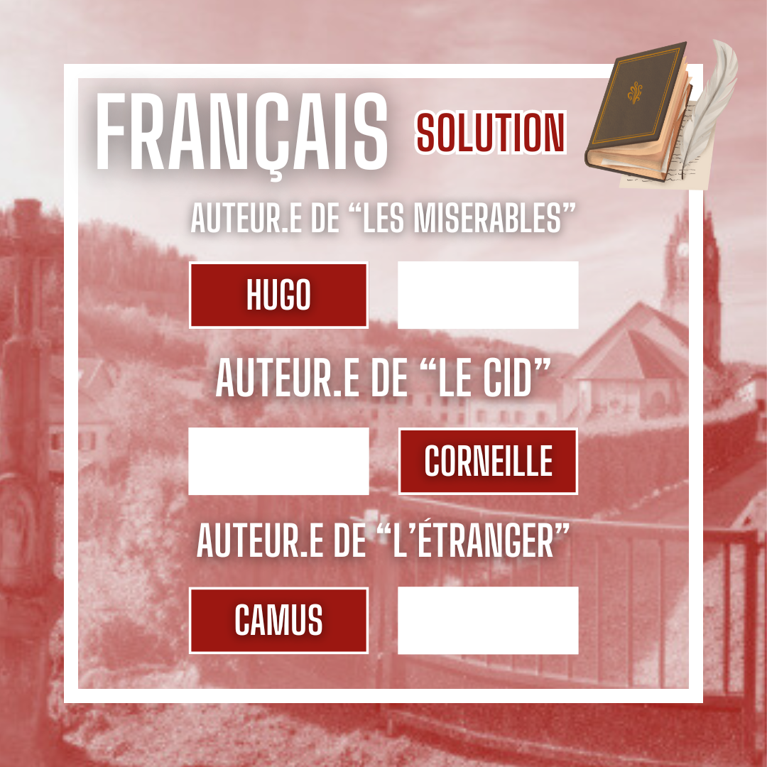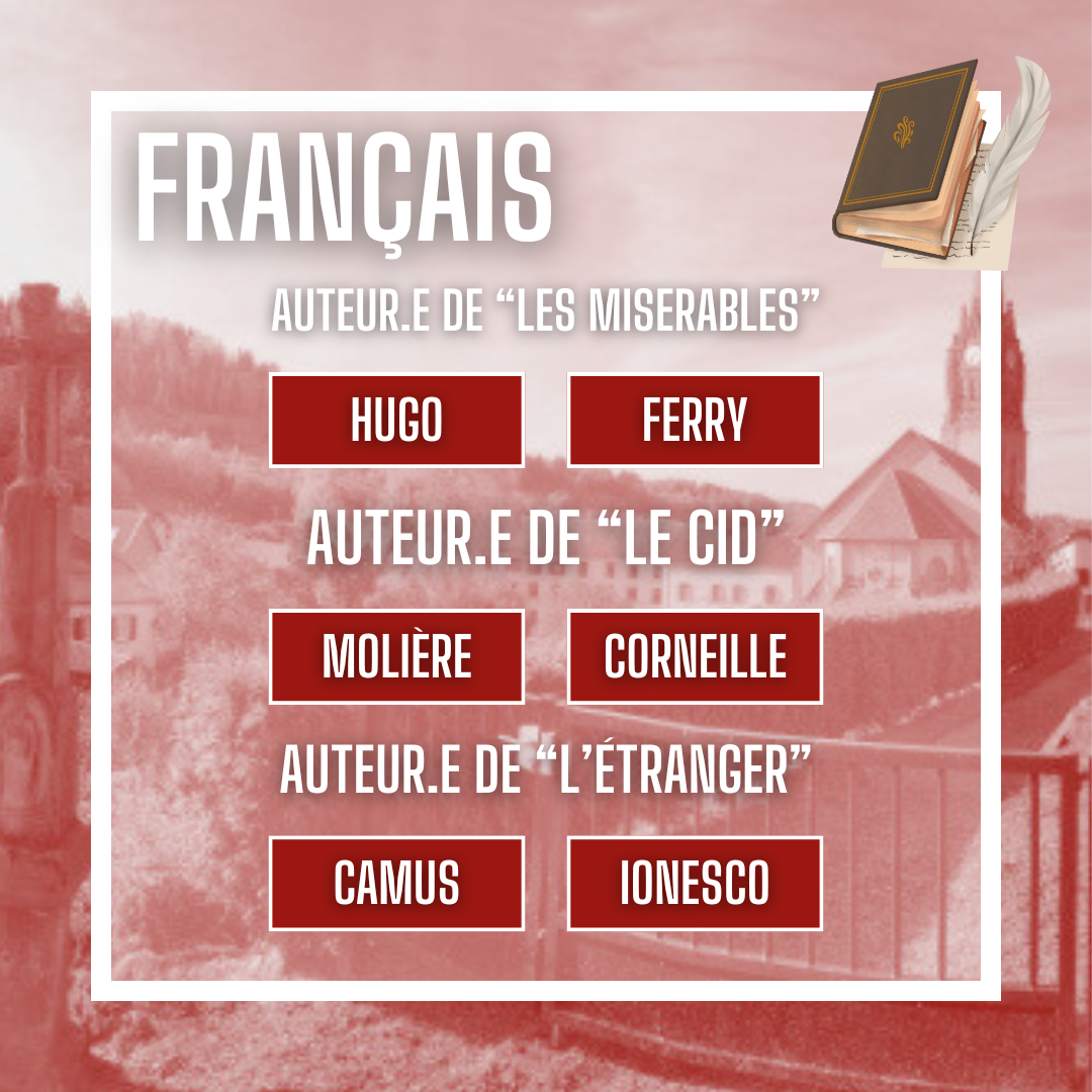 Pour cette 1ère partie du cahier de vacances, la langue de La Fontaine est à l’honneur : le Français ! En lettres et mots, voici un petit quizz sur des notions élémentaires de français.